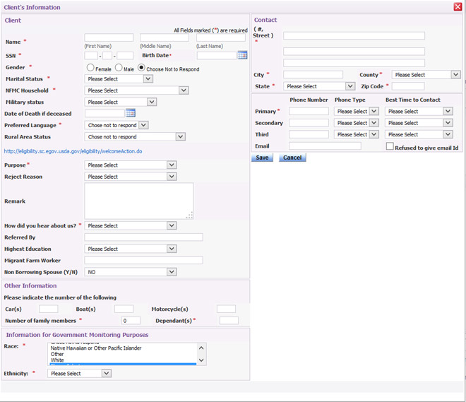 As counselor is creating a new case, if borrower or client is new to RxOffice® CMS, then counselor will click on Add New Client button and the below screen opens: